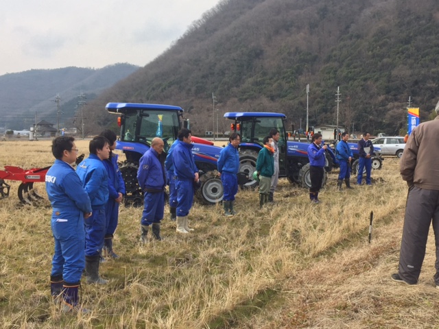 うちの代表こと「おとん」は一貫して井関農機の機械を使い続けています。長年の付き合いなので、うちで管理している圃場を会場に、新型トラクターの実演試乗会が行われることになりました。